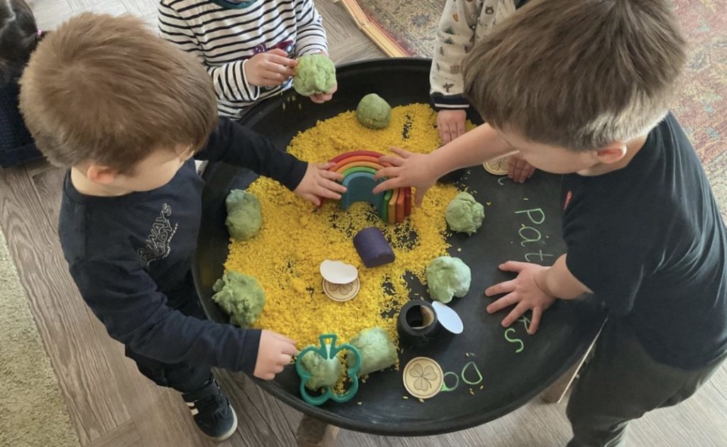 The children have had a wonderful time celebrating St Patrick’s Day! They got creative making beautiful bead shamrocks, explored a fun and exciting “lucky charm” tuff tray, and even had a go at some Irish dancing 💚